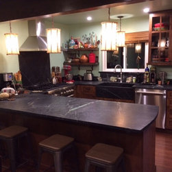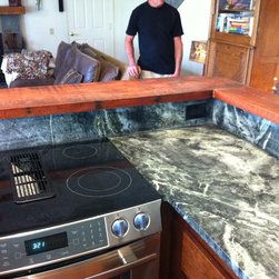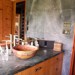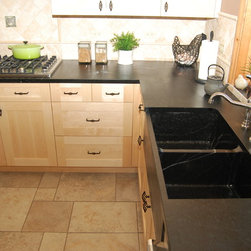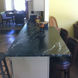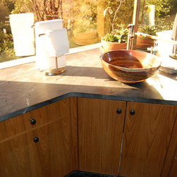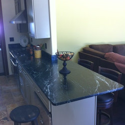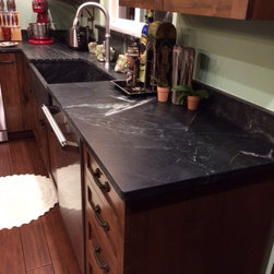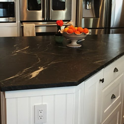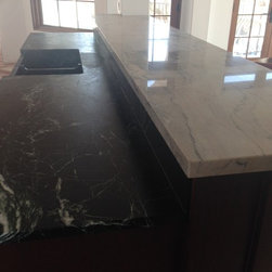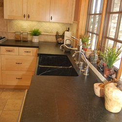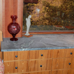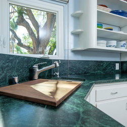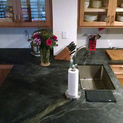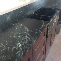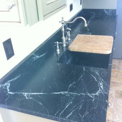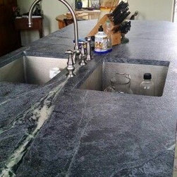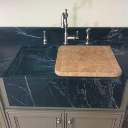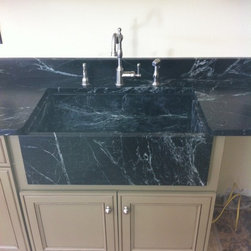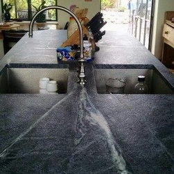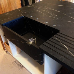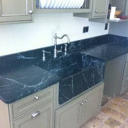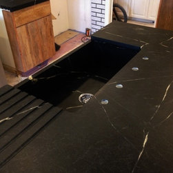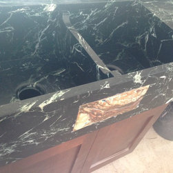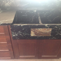 Nature has provided this rare stone that we only see occasionally, Pratima is a very hard stone with extraordinary veining set to a blue/black background. We recently did this kitchen and are extremely happy with the unusual beauty of this unique stone. The sink was made to include this custom made...