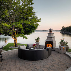 - the outdoor fireplace is located adjacent to the waterfront outdoor kitchen and bar