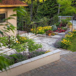- varieties perennials are used to visually connect the many terraces and feature areas