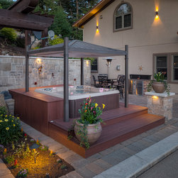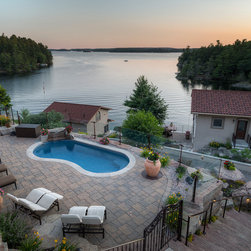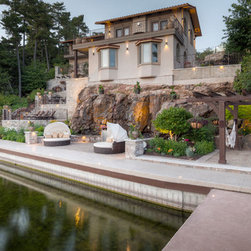 Terraced over a 30’ elevation change, these landscape elements cascade over natural granite outcroppings to the waterfront below. They incorporate the main residence, as well as several guest cottages and boat house spread throughout the intensely landscaped property. The steep elevation changes and intensely landscaped footprint created a challenging build environment, but strong project management strategies were used through all aspects of the construction process.