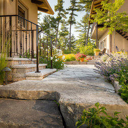 The design strategies included using deciduous shrubs such as Amelanchier canadensis, Physocarpus opulifolius ‘Seward’, Rhus typhina ‘Bailtiger’, Berberis thunbergii ‘Rose Glow’ and others to provide full season interest in colour and texture contracts, as well as structure and background for the herbaceous plantings. Perennials such as Hemerocallis ‘Stella D’Oro’, Nepeta ‘Purrsian Blue’, and Leucanthemum are repeated throughout the many gardens to provide a visual link and connection of the landscaped spaces. Ornamental grasses thrive in these conditions, and Panicum virgatum ‘Prairie Fire’, Miscanthus sinensis ‘Morning Light’, Pennisetum alopecuroides ‘Hameln’ provide a natural touchstone to the natural growth beyond.