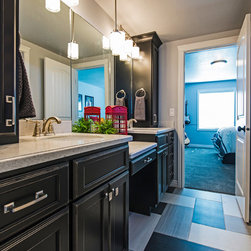 Attractive and tasteful, the Springbrook is a rambler house plan that uses both style and efficiency through the exterior and interior. The main level features the master suite as well as a n additional bedroom suite for guests or other people living there. The kitchen has a wide counter and walk-in pantry. The lower level features a large family room that opens into the patio. As well as three more bedrooms and a theater room perfect for movie nights. The basement also has a craft room for kids to complete schoolwork or activities. This layout provides efficiency to the home while also making it beautiful on the outside and the inside.