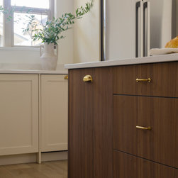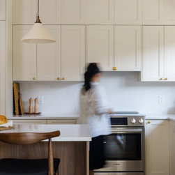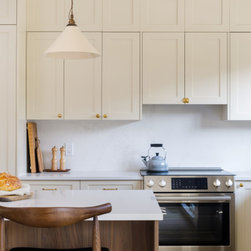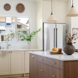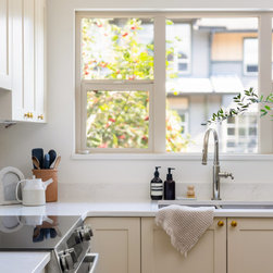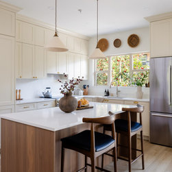 This collaborative design process transformed the kitchen from dark and dated into a timeless, light-filled haven, carefully blending modern updates with character and charm. By thoughtfully refining each element of the design, the perfect creamy white was selected for the Painted Heritage Shaker cabinets which was beautifully paired with Shinokki Frozen Walnut.