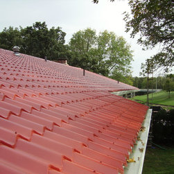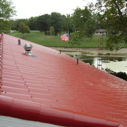 This is a steel tile that utilizes separate hip and ridge units on the gable, ridge and hips.