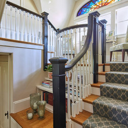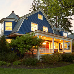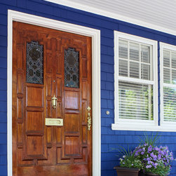 On the exterior, the home’s shingles were given a wash of unique, bright color unlike any other in the neighborhood. Small interior spaces were reimagined to accommodate a brighter, more active lifestyle with frequent gatherings. The main hall was restored with traditional detailing and bright colors. The kitchen was relocated from the rear to the front of the home to create connectivity between the heart of the home and the front porch with street views. Upstairs spaces were updated and enlivened to accommodate visiting family members of ranging ages. A dilapidated reach porch was remodeled into an outside living space with a simple screen system and intricate, historically-sensitive interior detailing was restored. Overgrown landscaping was cleared to accentuate the home’s appearance to passersby.