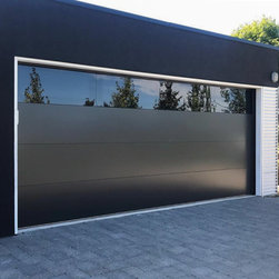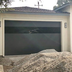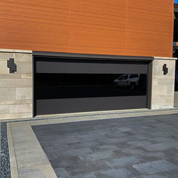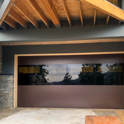 Sterling garage door in Charcoal with tinted infinity glass and custom powder coated tracks/hardware.
