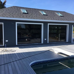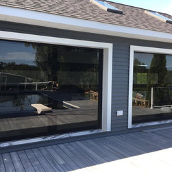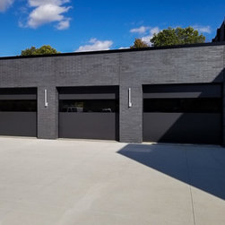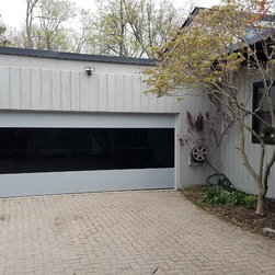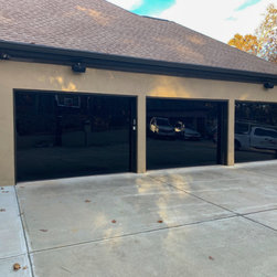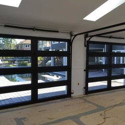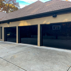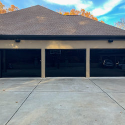 "Installed a couple CHI Overhead Doors model 2717 full glass doors today with black powder coat appearance package. We also custom painted the inside black for the customer. Paired these with a couple 8500w openers for the perfect match." -Alden's Shutters and Doors