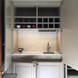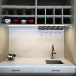 Organize your hospitality bar in a master suite setting. Built into the cabinetry for complete privacy.