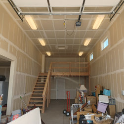 Installed loft and stairs in garage. The loft was built for more storage and a workbench underneath. The customer was satisfied with the loft and will be contacting us for more projects.