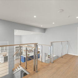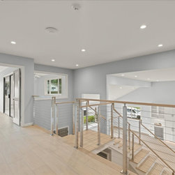 To maintain openness, the cable string railing system with its narrow posts and distinctive style modernizes the staircase and fits in flawlessly with the new aesthetic. The transformation extends beyond the common areas. The master bedroom and en-suite has been re-envisioned, featuring a sun drenched walk-in shower, custom storage filled vanity, dual medicine cabinets and unique corner walk-in closet bring this space from outdated to outstanding. Hand picked tiles in the both the downstairs and upstairs hall bathrooms are full of texture and movement, packing each space with personality. The modern-day work from office has been customized for productivity and comfort, U-shaped maple cabinets ensure a pleasant work day experience and across the way, the petite laundry room proves that every hard working space deserve a load of style.