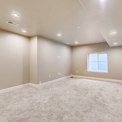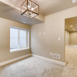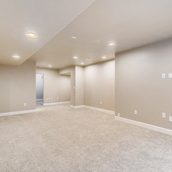 Basic and open basement finish. Lots of lighting to keep an otherwise dark area bright.