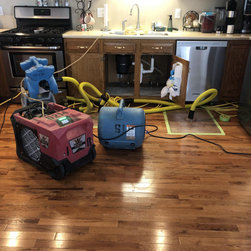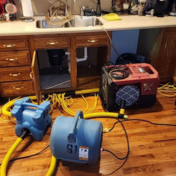 There was a water leak in the kitchen and it went into the crawlspace. We extracted water from the hardwood floors without having to pull them up and we set up drying equipment in the kitchen and inside the cabinet. We also set up dehumidifiers and air dryers in the crawlspace to ensure all the moisture was gone.