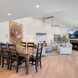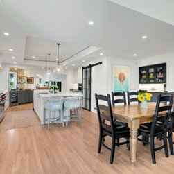 Central to the transformation was the removal of barriers, both physical and visual. By knocking down the wall separating the kitchen from the dining room and reimagining the floor plan, we ushered in a new era of spaciousness and flow. The result? An expansive living area that invites light, illuminating every architectural detail with radiant allure.