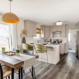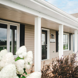 The popular and practical bungalow design has three bedrooms with ample closet and storage space. The large functional kitchen opens up to a dining area with a patio door. You can personalize the exterior of this home with vinyl siding, brick or stone, or a combination thereof.