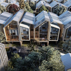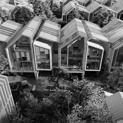 Here is the terrace, deconstructed. Max Strano and Claudio Inserra, of Bureau69, a niche Italian architecture outfit that opened in London last year, paired two terraced homes to create a “double module” with a pitched roof. They then broke this down into three elements — base, house and shell — and shifted them around to create the pronounced asymmetrical shape of the Shell.