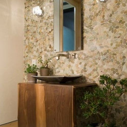 Natural Accents around a Sink Area. Pebble Wall is an Accent Wall.