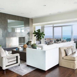 Condo Living Room with Large Modern Fireplace.