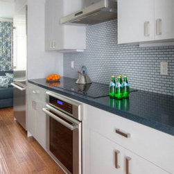 Contemporary Kitchen with Small Subway Tile Backsplash.