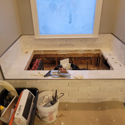 We replaced the current stand up shower with a new Luxury shower and the old whirlpool tub with a new soaker tub and new tile surrounding.