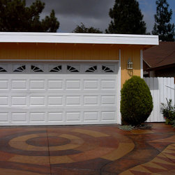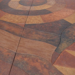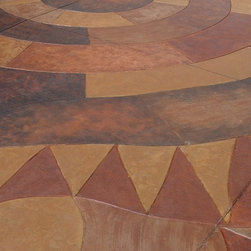 A unique design, representing an abstract landscape, materialized on a concrete floor in this installation.