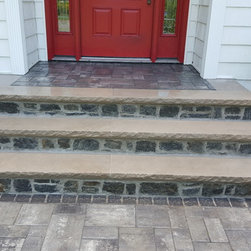 Steps were originally brick, these are resurfaced with real stone and a matching brick paver.