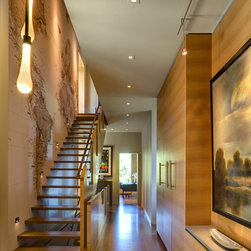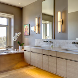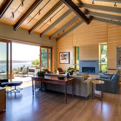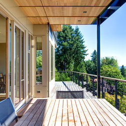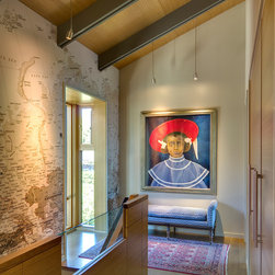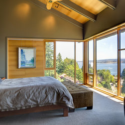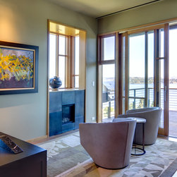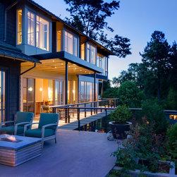 This project is located on a difficult steep slope with commanding views of Lake Washington and the Cascade mountains. The house is arranged to take advantage of the extremely small buildable area on the property and the unobstructed access to views and light afforded by the dramatic hillside to the East. Transitional in style, a mixture of traditional forms and modern detailing sought to provide a thoughtful place to celebrate the owners' love of travel and art.