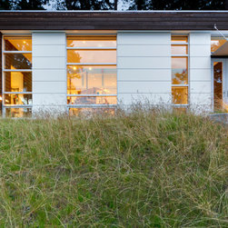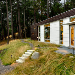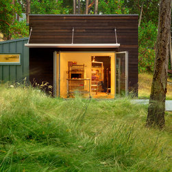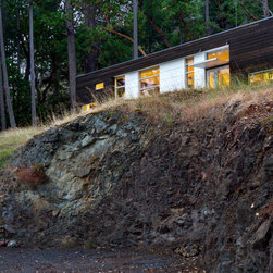 Located on a steep rocky waterfront parcel on the West Shore of San Juan Island in Washington, this small craft studio occupies a rocky shelf above and behind an existing main residence.