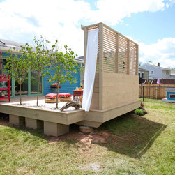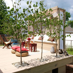Trees give this deck built in greenery and shade that will grow with the family.