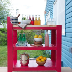 A custom rolling bar complete with a butcher block top is perfect for entertaining, which the Webers love to do.