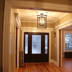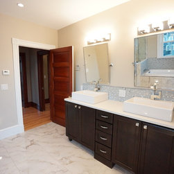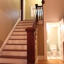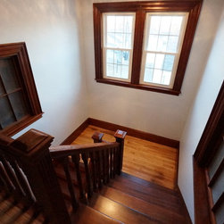 This was a house built in 1910 that needed a lot of love. We tore out the kitchen, added a master bed/bath suite, refinished all banisters and rails on stairs as well as all of the pocket doors. Added new paint, and finished the attic space, which had 4 doors leading into it, which we incorporated all of them, keeping the character and charm of this old Victorian.