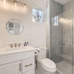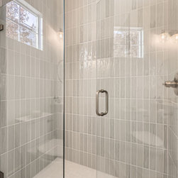 Bathrooms feature subtle sophistication with soft-toned vertical tile, brass fixtures, and fresh white vanities that feel bright and inviting. Every finish was selected to enhance light and texture while maintaining a sense of understated luxury.