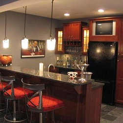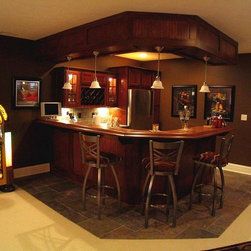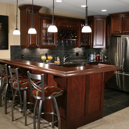 Custom designed and built wet bars are an ideal way to enhance the enjoyment of a finished lower level.
