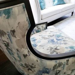 Elegant and elaborately detailed Victorian loaded with magical charm. Family-friendly fabrics were selected for these busy young professionals with little ones about. Friends and family are welcome to relax and enjoy with no worries of sticky fingers. Teal accents add a pop of color for fun!