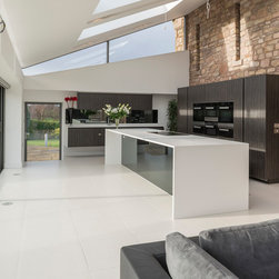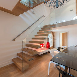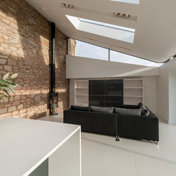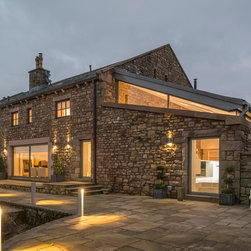 The original barn had been poorly converted about 10 years ago. The proposals stripped the property back to the structural shell, then reformed the whole of the interior. A contemporary and sympathetic extension provided a large kitchen/family room with large sliding doors opening to the gardens.