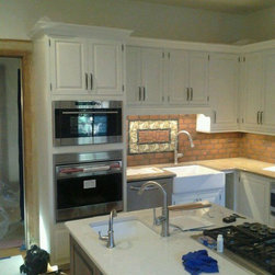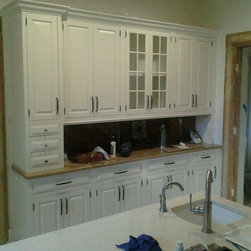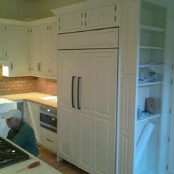 WoodHarbor cabinetry: Flush Inset styling / Portland door / Cherry / "Cappucino" - Matte
