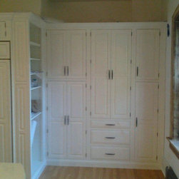 WoodHarbor cabinetry: Flush Inset styling / Portland door / Maple / "Coastal White"