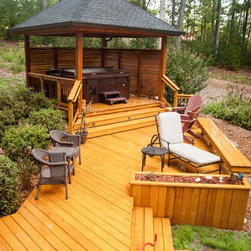 Back deck extension with covered pergola.