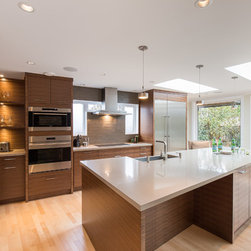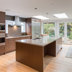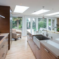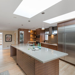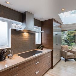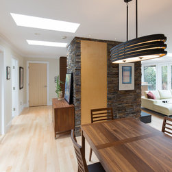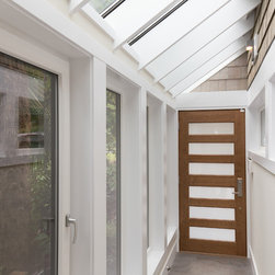 The entry for this home was relocated to create a zen-like feel to guide one into the modern, open concept kitchen/living room.