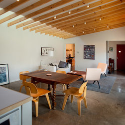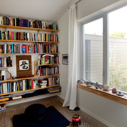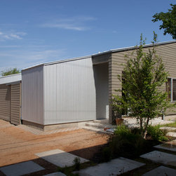 Designed to serve the needs of the Abbot on the grounds of the Houston Zen Center, this 1,200 square foot residence provides private living spaces and gardens on a busy urban site. Planned for flexibility of use, the plan allows for a small suite of rooms just inside the front door to be isolated from living spaces by means of a large sliding door, to serve as space for student/teacher meetings during meditation retreats. Articulation of the floor plan maximizes private views while optimizing solar orientation and allowing for the development of private gardens as outdoor rooms. The site provides twenty parking spaces for Zen Center members and guests, and additionally supports a substantial vegetable garden and composting facilities.