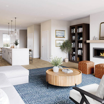 We started this design with a clean slate of high ceilings and white walls which was perfect for installing floral wallpaper on an accent wall. The wallpaper is removable and features an oversized floral pattern in soft blush and light pink tones, and the leaves a soft sage green. The gorgeous crib and dresser both from Newport Cottages has gold and acrylic hardware and were the centerpiece of the design. We added gold and blush decor and accents throughout the space the match the furniture. The client had her heart set on a blush glider. Looking through custom fabrics from Best Home Furnishing we found the perfect shade. With delicate tufted back the gilder is really stands out. The gold framed large family photos really makes a big impact in the space. The off white velvet blackout curtains have a luxurious feel and paired the golden curtain it fits the space perfectly.