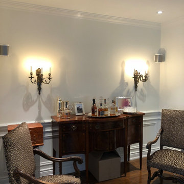Boasting views of the Museum of Natural History and Central Park, the Beaux Arts and French Renaissance style building built in 1900 was once home to a luxury hotel. Over the years multiple hotel rooms were combined into the larger apartment residences that exist today. The resulting units, while large in size, lacked the continuity of a single formed space. StudioLAB was presented with the challenge of re-designing the space to fit a modern family’s lifestyle today with the flexibility to adjust as they evolve into their tomorrow. Thus, the existing configuration was completely abandoned with new programmatic elements being relocated in each and every corner of the space. For clients that are big wine connoisseurs, the focal point of entry and circulation lies in a 400 bottle, custom built, blackened steel and glass, temperature controlled wine cabinet. The once enclosed living room was demolished to create one main entertaining space that includes a new dining area and open kitchen. Hafele bi-folding pocket door slides were used in the Living room wall unit to conceal the television, bar and display shelves when not in use. Posing as kitchen cabinetry, a hidden integrated door opens to reveal a guest bedroom with an en suite bathroom. Down the hallway of wide plank ebony stained walnut flooring, a compact powder room was built to house an original Paul Villinski installation of small butterflies cut from recycled aluminum cans, entitled Mistral. Continuing down the hall, and through one of the walnut veneered doors, is the shared kids bedroom where a custom-built bunk bed with integrated storage steps and desk was designed to allow for play space and a reading corner. The kids bathroom across the hall is decorated with custom Lego inspired hand cast concrete tiles and integrated pull-out footstools residing underneath the floating vanity. The master suite features a bio-ethanol fireplace wrapped in blackened steel and integrated into the Tabu veneered built-in. The spacious walk-in closet serves several purposes, which include housing the apartment’s new central HVAC system as well as a sleeping spot for the family’s dog. An integrated URC control system paired with Lutron Radio RA lighting keypads were installed to control the AV, HVAC, lighting and solar shades all by the use of smartphones.