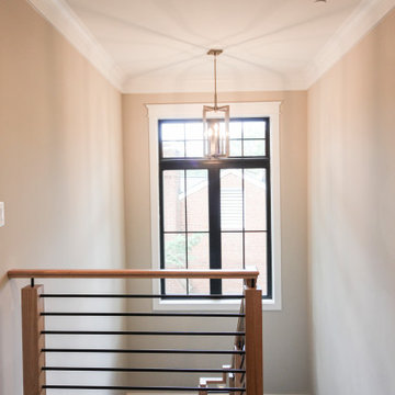 We started this design with a clean slate of high ceilings and white walls which was perfect for installing floral wallpaper on an accent wall. The wallpaper is removable and features an oversized floral pattern in soft blush and light pink tones, and the leaves a soft sage green. The gorgeous crib and dresser both from Newport Cottages has gold and acrylic hardware and were the centerpiece of the design. We added gold and blush decor and accents throughout the space the match the furniture. The client had her heart set on a blush glider. Looking through custom fabrics from Best Home Furnishing we found the perfect shade. With delicate tufted back the gilder is really stands out. The gold framed large family photos really makes a big impact in the space. The off white velvet blackout curtains have a luxurious feel and paired the golden curtain it fits the space perfectly.