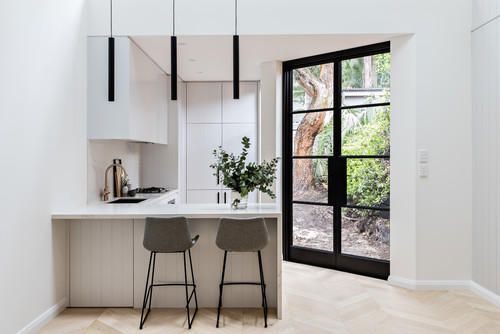 Features: A half-height timber splashback such as this one is a smart solution in an entertainer’s... |