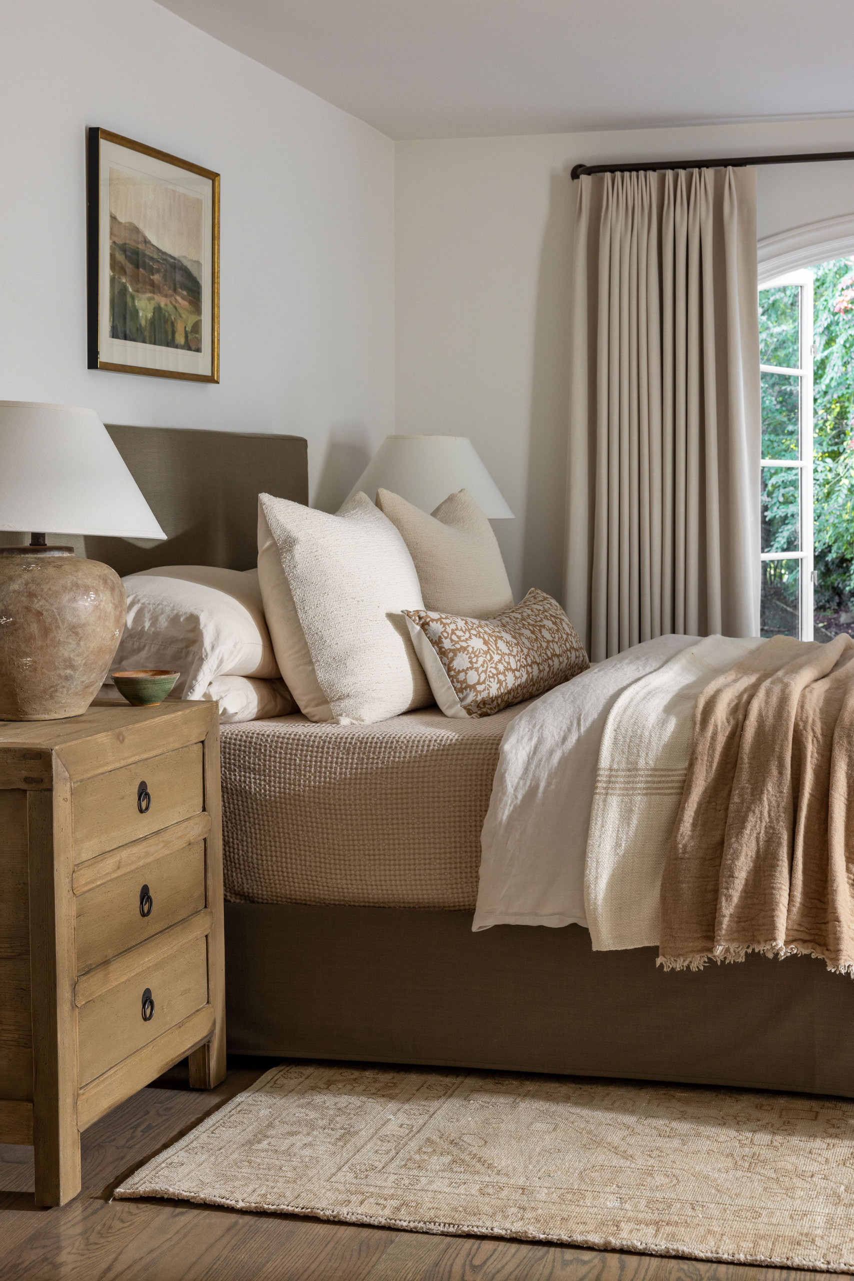 The more layers of bedding the better. “Layered bedding is a consistent recommendation for bedrooms in my design approach,” designer Missy Stewart says. “The incorporation of varied textures and colors not only enhances the overall comfort but also injects a multitude of design qualities into the space, elevating its aesthetic appeal.”