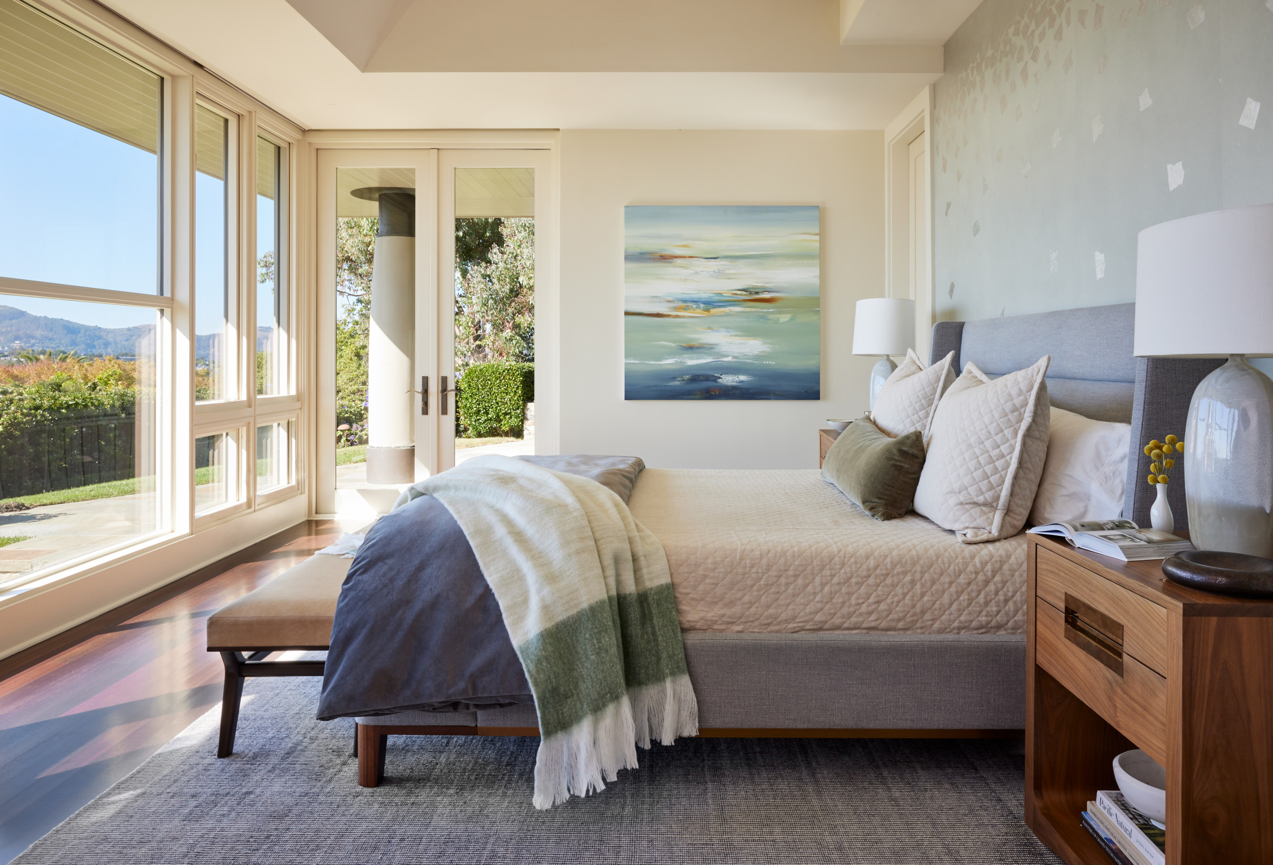 Whenever possible, pros suggest highlighting a great view in a bedroom. “Having a view from the bed is always a goal,” says designer Stephanie Tottingham of Kashas Design | Build. If a sweeping landscape isn’t in the cards, consider adding artwork.