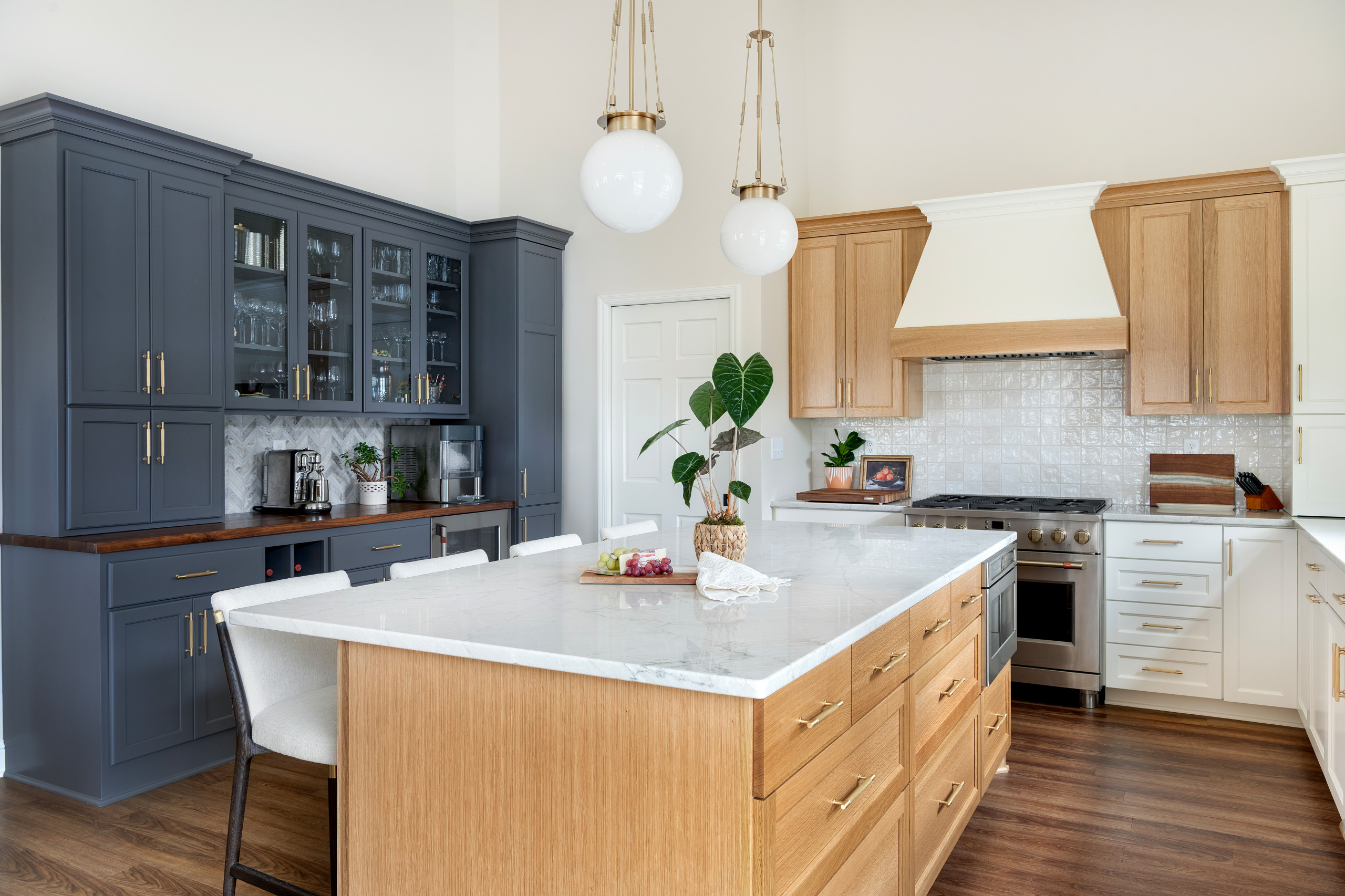 Think about how you imagine using the bar both every day and on special occasions. We’re realistic with many clients who have families in pointing out that children will often sit there and talk with parents, complete homework, use devices and eat (sometimes all at the same time) — I call this the “mission control” island breakfast bar.