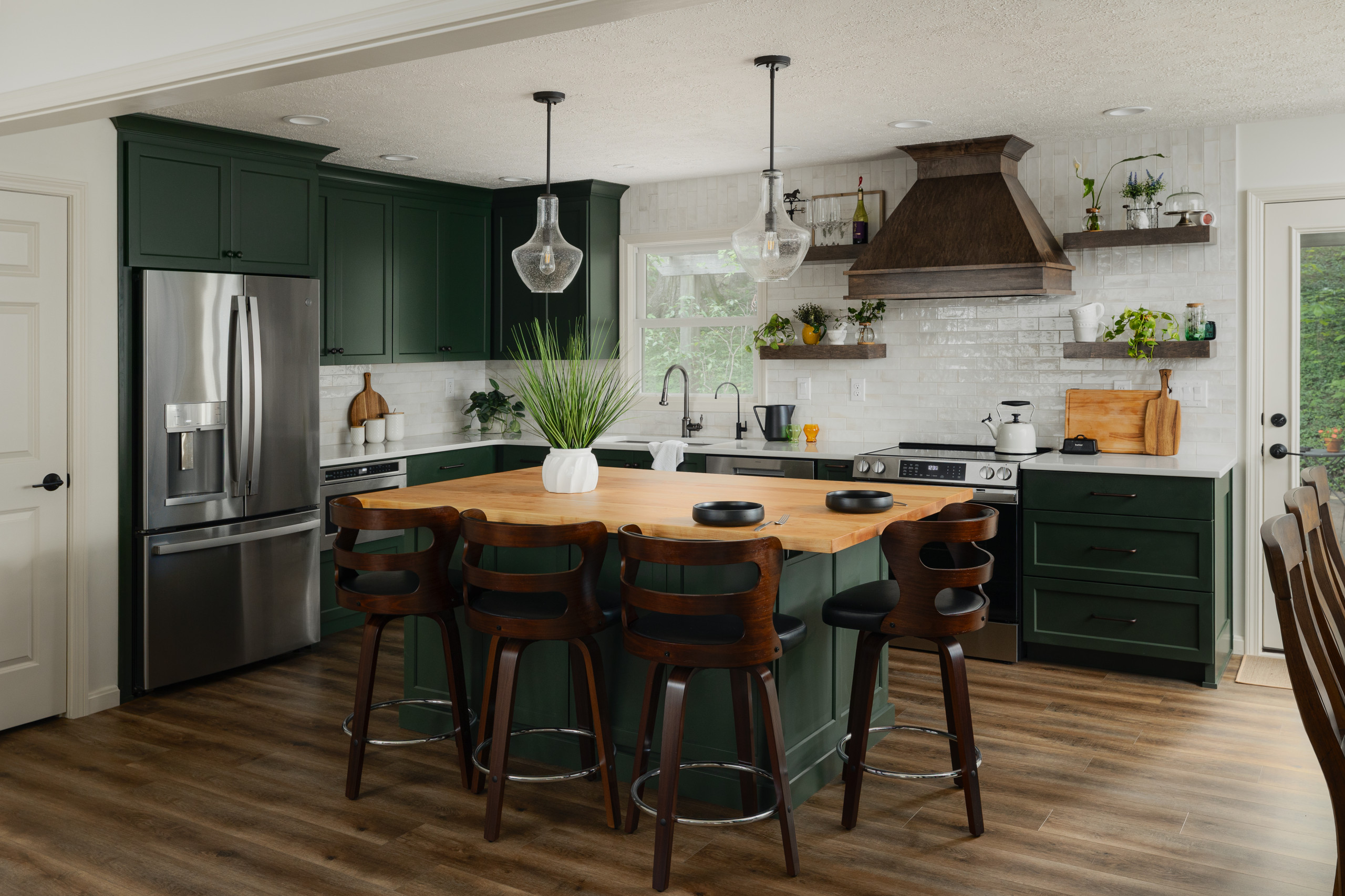 Some people like to drop down part of the island to table height (around 29 inches) rather than the standard 36-inch-high countertop. This can work really well in some kitchens, but do be careful that you don’t inadvertently limit your storage and appliance options by having a really large table section on the island.