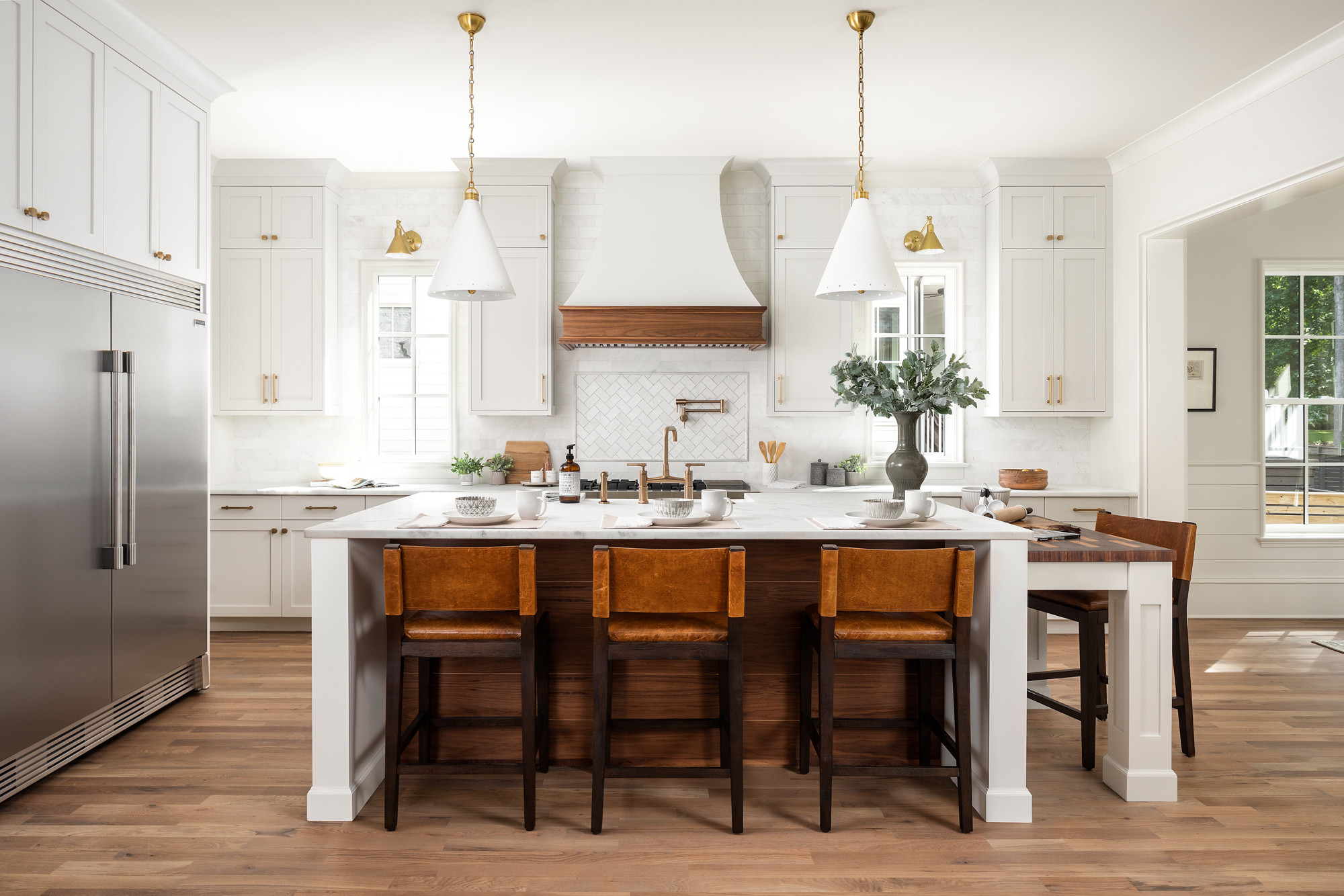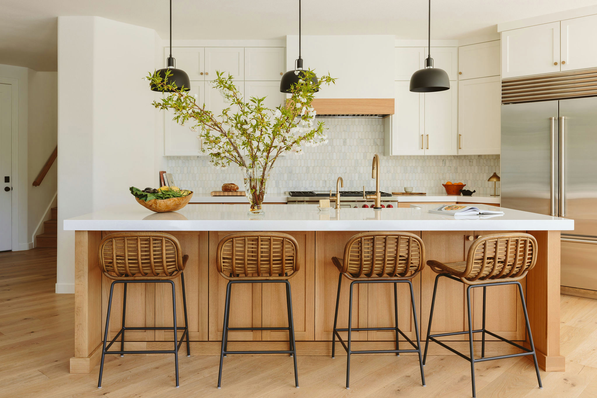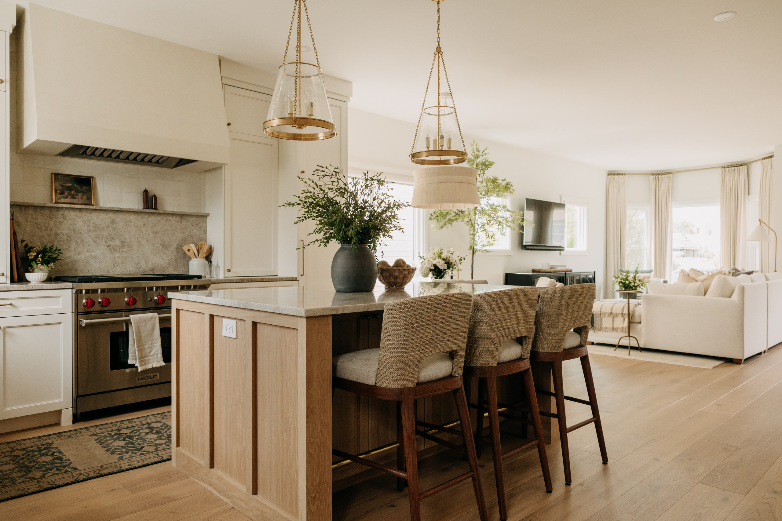 When you’re choosing materials and colors for your island, make sure they harmonize with any hues in the adjoining rooms.