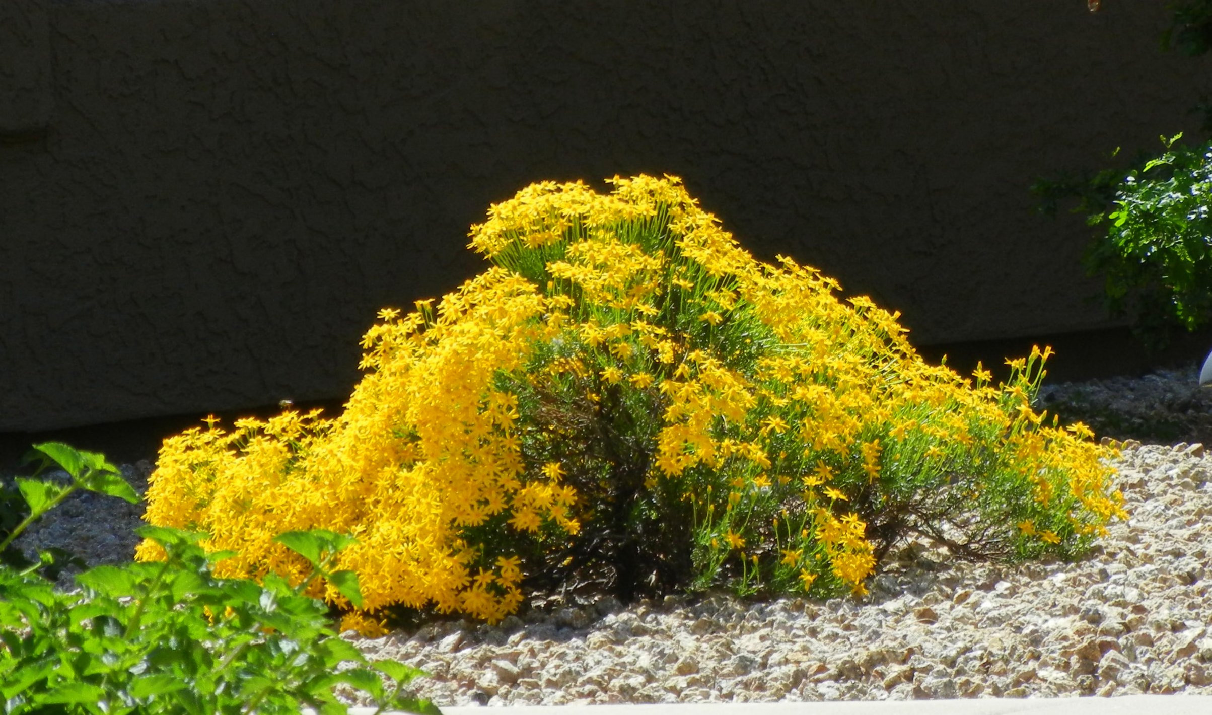 Finely textured, dark green foliage graces the softly rounded shape of this desert native throughout the year, making it a great background or filler plant for the landscape. In fall, light to dark yellow flowers appear over the leaves, creating the appearance of golden snow. The flowers themselves are tiny but are clustered in masses, which together add a lot of color to the garden.