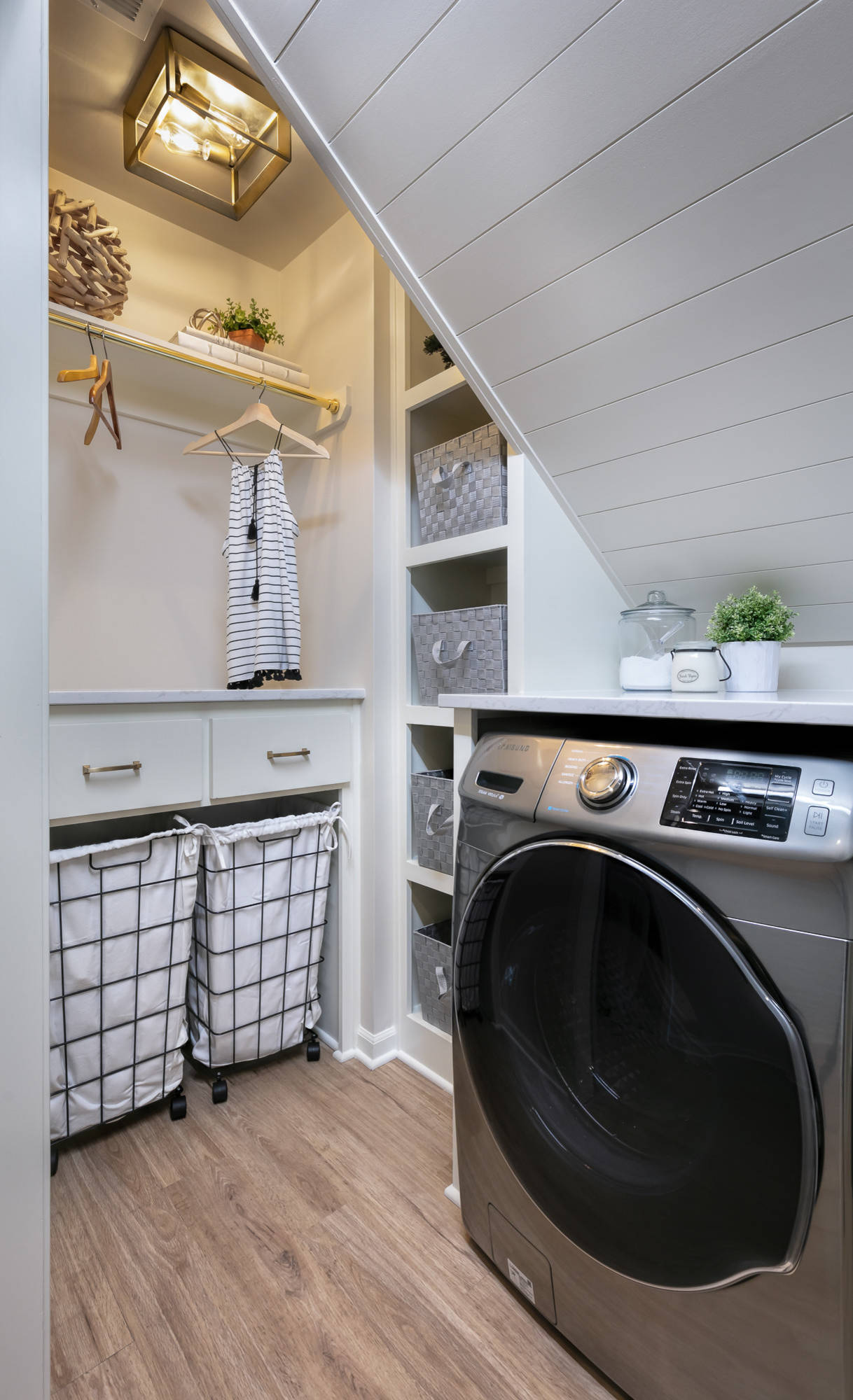 7. Dedicated hamper space. As we noted in our 2021 design trends predictions, a dedicated space for hampers in a laundry room is a seemingly simple design feature that makes a huge difference.